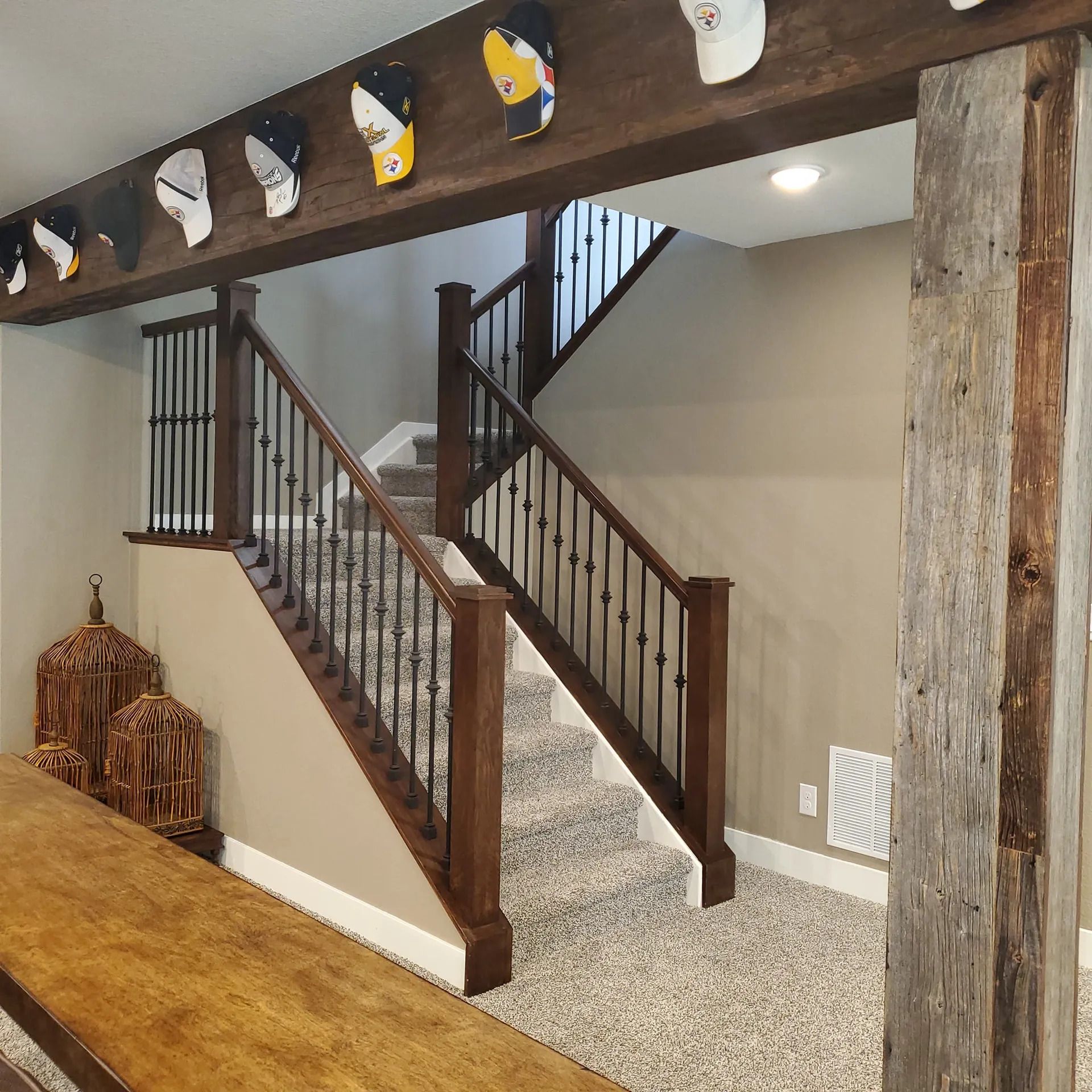 While railings can seem like an unimportant part of the process, they truly set the mood as you descend down the stairs into your basement. Think of the railings as the first impression of your new room people will have!